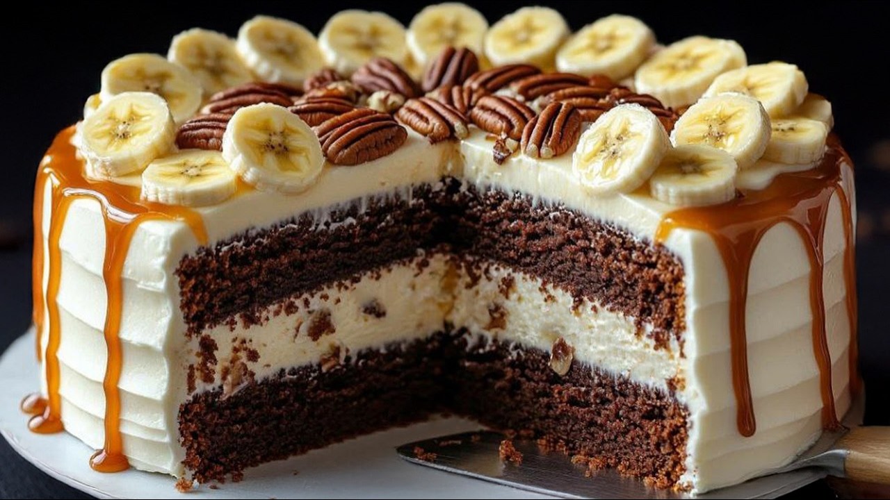 - Mit Bananenscheiben und Pekannüssen dekorieren.