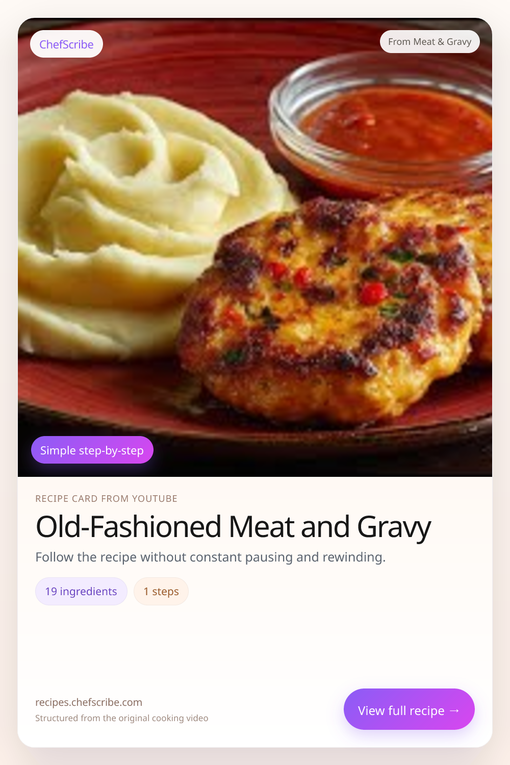 Meat & Gravy on YouTubeYouTube Recipe CardStructured by ChefScribe