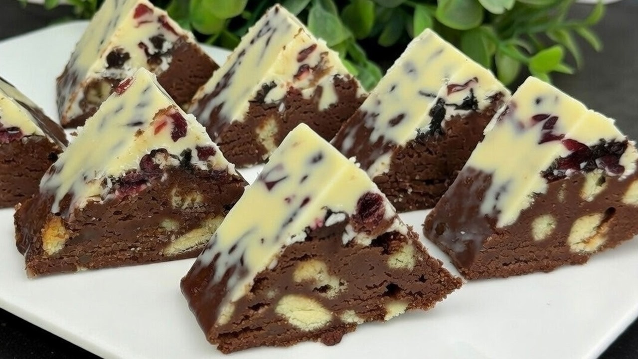 - Die Mischung in eine Form geben und mit geschmolzener weißer Schokolade überziehen.