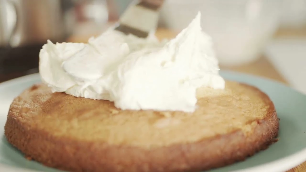 - Place one sponge on serving plate and spread with mascarpone cream.